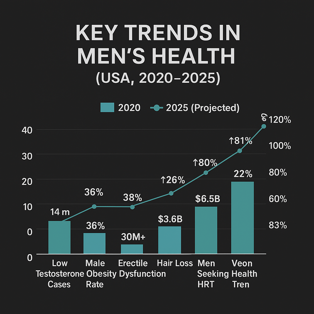 - 1 in 3 men struggles with obesity or metabolic decline